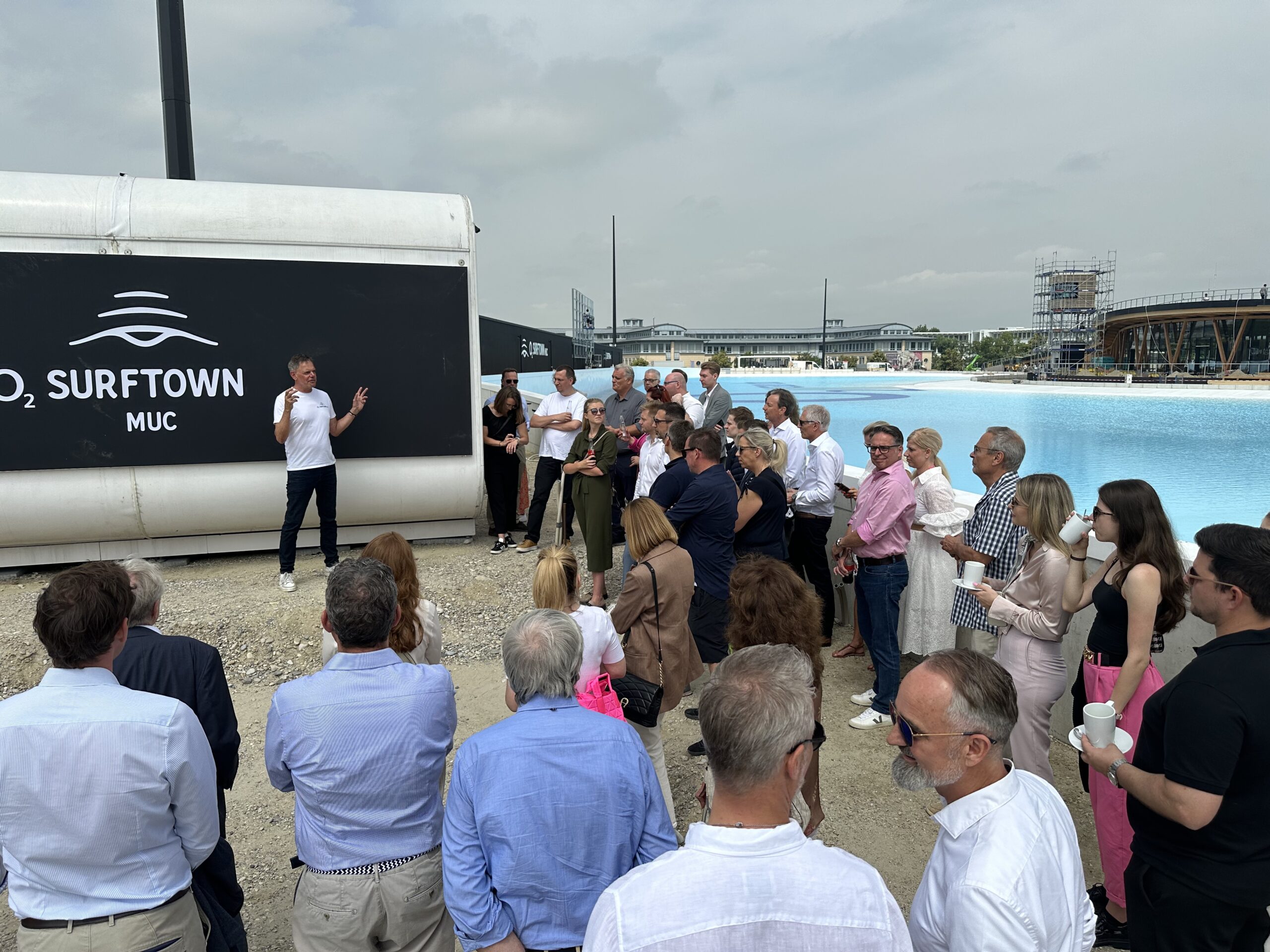 Kurz vor Fertigstellung Europas größter Surfwelle O2 SURFTOWN MUC haben gestern etwa 45 Immobilienmakler führender Maklerhäuser den MABP besucht, um sich ein Bild von der Neuerfindung des Standorts zu machen.